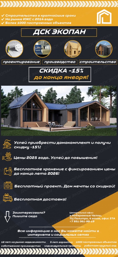 Общество с ограниченной ответственностью "ДСК ЭКОПАН" - производственно-строительная компания которая с 2014 года успешно занимается продвижением, обучением и строительством по технологии ЭКОПАН (СИП) - аналог североамериканской технологии (SIP) или канадской EcoPan на территории России и зарубежом. Наша компания - является одним из пионеров СИП (SIP) технологиив России и более известна под брендом ЭКОПАН (Свидетельство №486132).